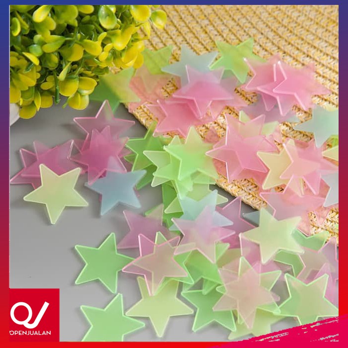 Ready Warna : +mixed+blue+kuning+hijau+pinkSpesifikasi:- 1pack isi 100 pcs- Material : Plastik- Ukuran : 3x3cm / 1.19""x1.19""- menyala dalam gelap.Harga per 1 Pack (isi 100 Pcs), sudah termasuk perekat / double tapeMembuat dekorasi ruangan atau kamar menjadi lebih menarik dan lucu dengan glow in the dark.Glow in the dark terbuat dari bahan dasar plastik & Fosfor yang mampu menyerap dan menyimpan cahaya.CATATAN:Cantumkan pilihannya dan berikan opsi warna lain pada saat order, Tanpa catatan untuk penjual atau memilih varian yg tidak tersedia maka akan kami kirim random ( NO Komplain, No Retur ) kecuali ada keterangan kosong Ca