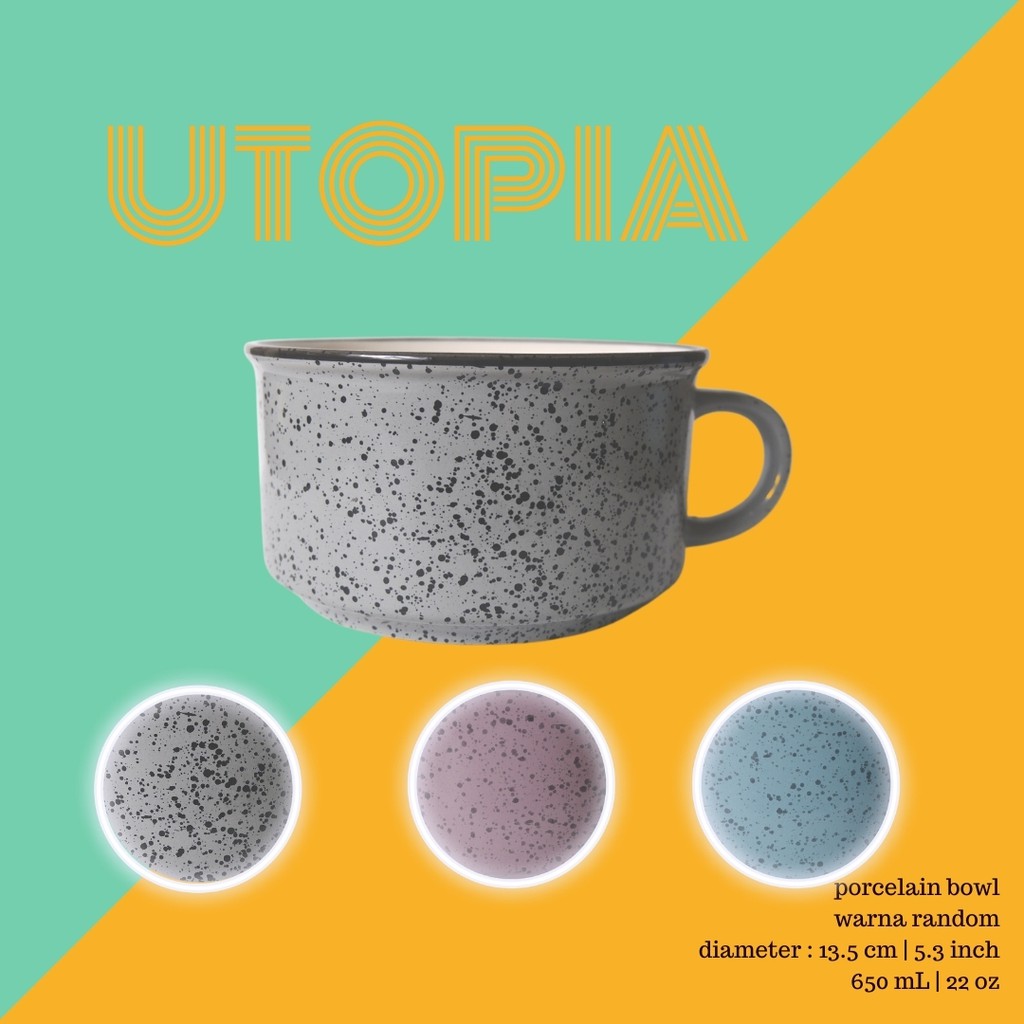 UTOPIA Ceramic Bowl | Mangkok Sup Porcelain | Mangkuk Salad KeramikSPESIFIKASIWarna : abu-abu - biru - pink(WARNA RANDOM. TIDAK BISA MILIH)Microwave dan dishwasher safe.Tinggi : 7.3 cmDiameter mulut : 6.5 cmKapasitas : 650 mLKetebalan : 5.7 mmBerat : 650 gramHARGAHarga : RP 40,000 / unitHarga : RP 400,000 / lusin(Harga lusinan HANYA BERLAKU untuk pengiriman via gosend, grab express, atau via ekspedisi normal dengan packing kayu)(Untuk harga lusinan, silahkan order 10, kita akan kirim 12)(Untuk harga lusinan, packing standard : 1 lapis koran)RESIKO PECAH KARENA EKSPEDISI DI LUAR TANGGUNG JAWAB KITA DAN EKSP