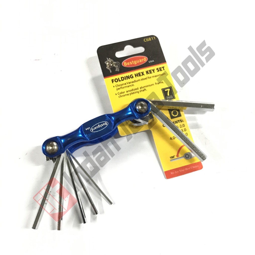 Kunci L SetBrand : BestguardTipe : C6811Ukuran : - 1.5 mm- 2 mm- 2.5 mm- 3 mm- 4 mm- 5 mm- 6 mmFinishing Chrome dengan bahan yang