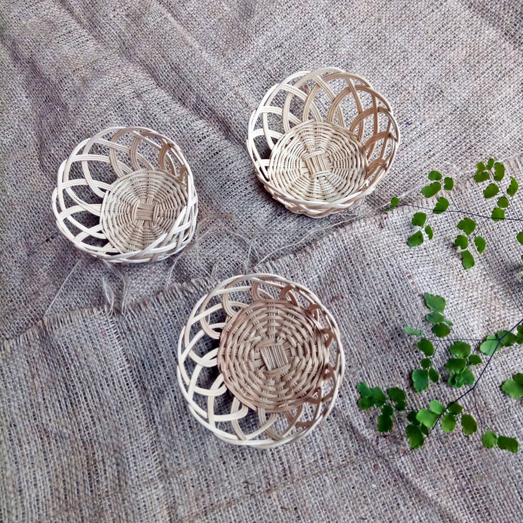KERANJANG PERMEN ROTAN NATURALORGANIZER/ WADAH ROTAN/ WADAH PERMENREADY STOCKSize: diameter 7 cmWeight: 100 grMaterial: RotanKeranjang permen rotan merupakan wadah kecil yang terbuat dari anyaman rotan. Keranjang ini halus karena sudah melalui proses finishing untuk menghilangkan serabut-serabut bambunya sehingga lebih halus. Keranjang ini berwarna natural, artinya tidak melalui proses pewarnaan sehingga warnanya alami seperti warna bambu asli. Keranjang rotan ini cocok untuk diletakkan di meja kantor maupun meja ruang tamu untuk menyajikan permen. Bentuknya yang kecil menjadikan keranjang ini imut dan lucu. Selain itu, keranjang ini juga bisa digunakan untuk wadah penyimpanan serbaguna, seperti wadah kunci, tempat aksesories, pernak-pernik, dan lain sebagainya. Keranjang ini juga dapat digunakan untuk menyajikan makanan seperti fries dengan melapisi keranjang ini dengan kertas minyak. Fries dalam jumlah kecil yang disajikan cocok untuk snack time dan teman bercakap. Untuk kamu yang punya usaha kuliner, bisa banget lho untuk menggunakan keranjang ini sebagai alas sajinya.Keranjang ini memiliki berbagai warna, diantaranya merah, kuning, hijau, biru, ungu, pink, navy, tosca dan orange. Harap mencantumkan warna di keterangan, jika tidak maka akan dikirim secara random. Untuk kamu yang tidak menginginkan keranjang berwarna, ada juga pilihan natural. keranjang natural artinya tidak melalui proses pewarnaan sehingga warnanya alami seperti warna rotan asli. Note:- Pembelian minimal 5pcs.- Untuk menghemat biaya pengiriman, disarankan untuk menggunakan cargo dengan minimal belanja 10