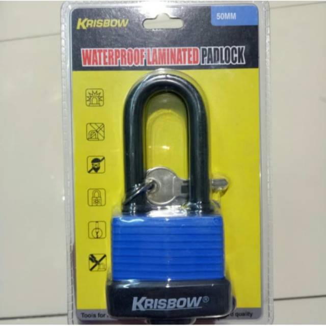 Kunci barang-barang berharga Anda dengan gembok ini. Terbuat dari logam padat yang tahan karat dan tahan air sehingga tidak mudah rusak. Cocok digunakan sebagai pengunci pintu pagar, toko, gudang, dan keamanan kendaraan. Tersedia dalam ukuran 50mm.Brand : KRISBOWwarna : KUNING dan BIRUSpecification :- Untuk mengunci pintu properti- Tahan karat dan cuaca hujan- Tidak mudah rusak* Tidak untuk pemakaian di dalam air- Lebar gembok = 50 mm- anak Kunci = 4 PcsBest Kurir