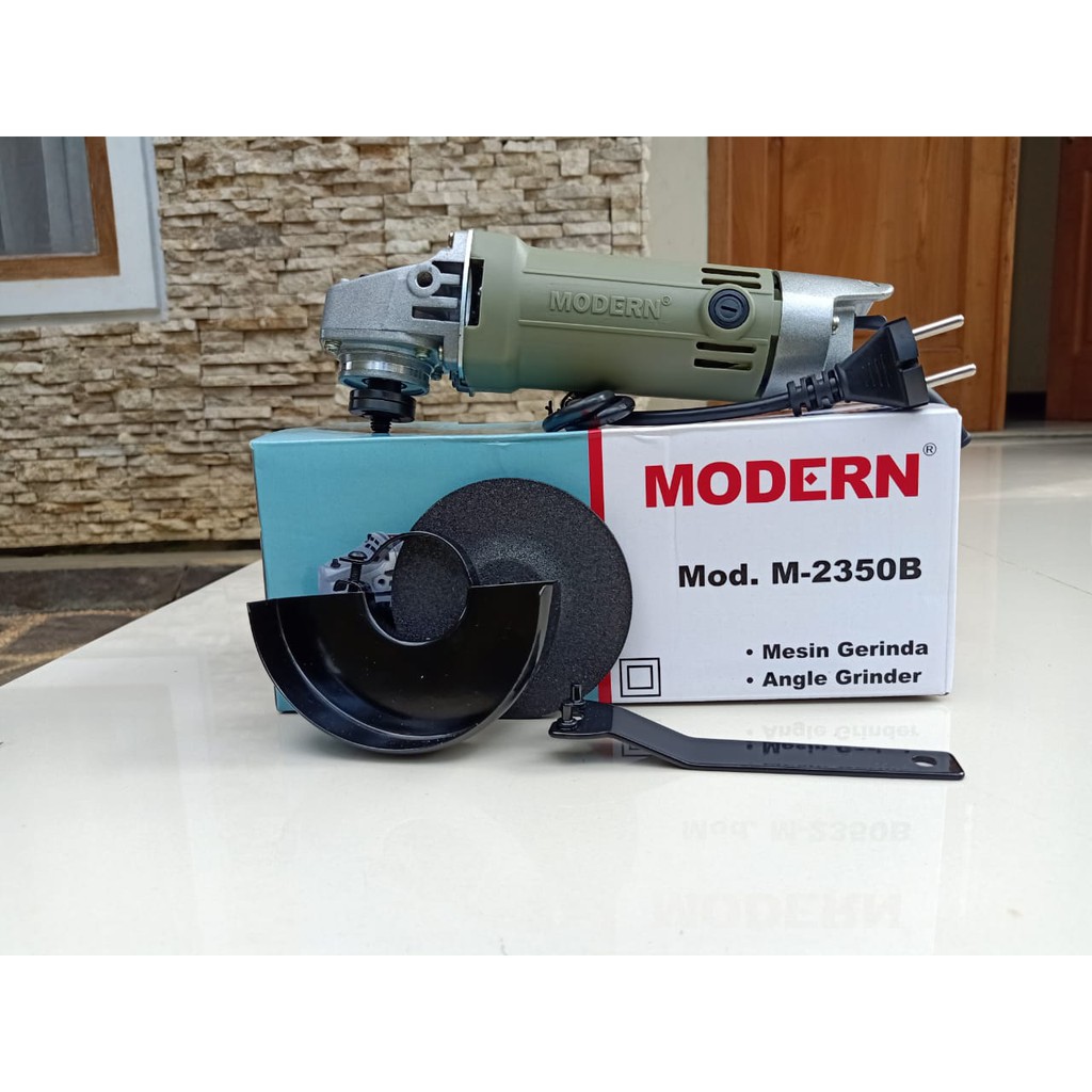 Mesin Gerenda Modern M-2350B merupakan mesin gerenda kelas menengah, dengan daya yang cukup besar 570watt diharapkan mampu memberikan power yang maksimal..Spesifikasi Produk :1. Diameter Disc 100mm2. Pelindung Pisau 75mm3. Voltase 220 volt4. Frekuensi 50-60 Hz5. Kecepatan tanpa beban 12000 rpm6. Daya 570 watt7. Berat 1,