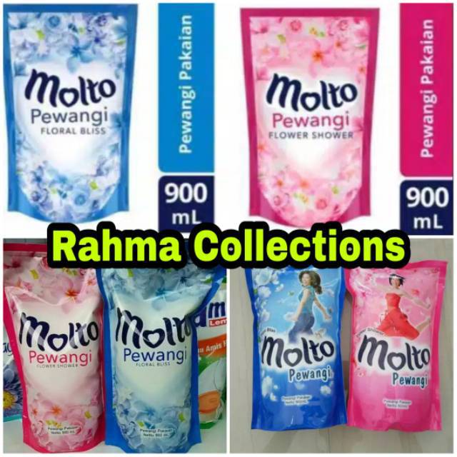 MOLTO Pelembut dan Pewangi Pakaian 900mlMOLTO menghadirkan pelembut dan pewangi pakaian varian Pink untuk memberikan kesegaran dan wangi aromaterapi yang menyenangkan pada pakaian. Produk ini diformulasikan berupa konsentrat dengan sentuhan memikat mawar dan lily yang memberi keharuman segar dan membuat pakaian mudah disetrika. Produk ini hadir dengan kemasan 900ml yang dapat Anda jadikan pilihan saat berbelanja bulanan untuk melengkapi kebutuhan rumah tangga. Detail:- Pewangi dan pelembut pakaian- Dengan wangi aromaterapi - Dapat memberikan keharuman menyegarkan & tahan lama- Volume : 900 mlTIDAK BISA PILIH WARNA. RANDOM !!!TAPI KAMI USAHAKAN SESUAI REQ ANDA.KASIH KETERANGAN WARNA YG DIPILIHKALAU ADA SAYA KASIH...KALAU KOSONG RANDOMPerhatikan sebelum order :Jika ada barang pecah/bocor dikarenakan proses pengiriman ekspedisi.BUKAN MENJADI TANGGUNGJAWAB KAMITerimaka