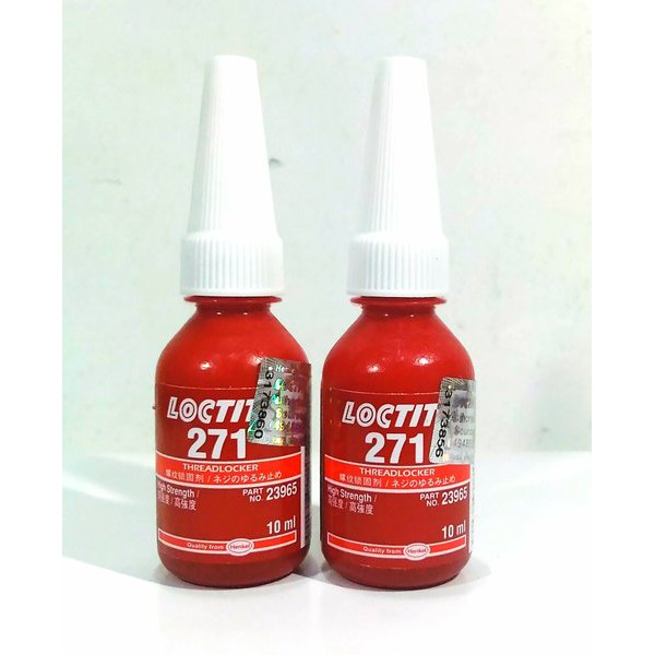 Pengiriman hanya untuk wilayah Jawa Barat, DKI, Banten Harga satuan stok terbaruExpired date: 2020LOCTITE271 is designed for the permanent locking and sealing of threaded fasteners. The product cures when confined in the absence of air between close fitting metal surfaces and prevents loosening and leakage from shock and vibration. Typical applications include the locking and sealing of large bolts and studs (up to M