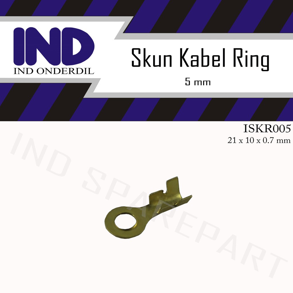 Skun Kabel RingMerk: INDSKU: ISKR005 Bisa Untuk Berbagai KeperluanSpesifikasi: P x L x T: 21,7 x 10 x 0,7 mmDiameter Lubang: 5 mmBerat: 1 gramI N D _ S P A R E P