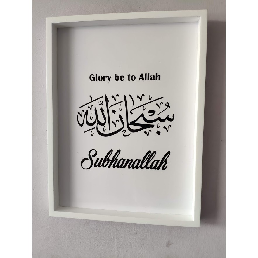 Hiasan dinding kaligrafi subhanallah alhamdulillah allahu akbar hitam putih frame putihharga per item pilih sesuai variasi1. subhanallah2. alhamdulillah3. allahu