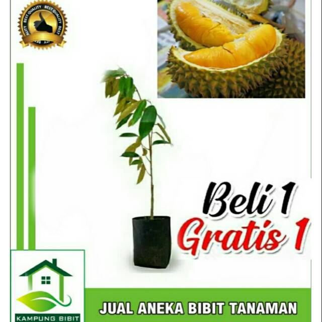 PROMOO GILAAA!!! Ayo pelanggan kampung Bibit yang terhormat BELI 1 GRATIS 1 Beli 2 gratis 2 beli 5 gratis 5 dst....Yg kami jual adalah tanaman hidup berbentuk bibit pohonBuah durian musang king termasuk jenis unggul dengan keunggulan daging buah yang lebih tebal dan tekstur yang lebih lembut.Daging buah durian musang king berwarna kuning kunyit dengan rasa yang legit. Dengan kualitas dan keunggulan yang dimiliki durian musang king inilah yang membuat harga buahnya tinggi.Asal bibit : okulasiIklim Tumbuh Optimal : dataran rendah sampai dataran tinggiKebutuhan Sinar Matahari : sepanjang hariUkuran Pot Minimal : diameter lebih dari 60cmMedia Tanam : tanah dan humusPenyiraman : 2 kali sehariPemupukan : pupuk NPK Daun 1 kali sebulanCtt # untuk pembelian luar pulau Jawa dan sumsel di wajibkan membeli surat KARANTINA (Chat aj klo bingung) Selamat bertanam salam kampung Bib