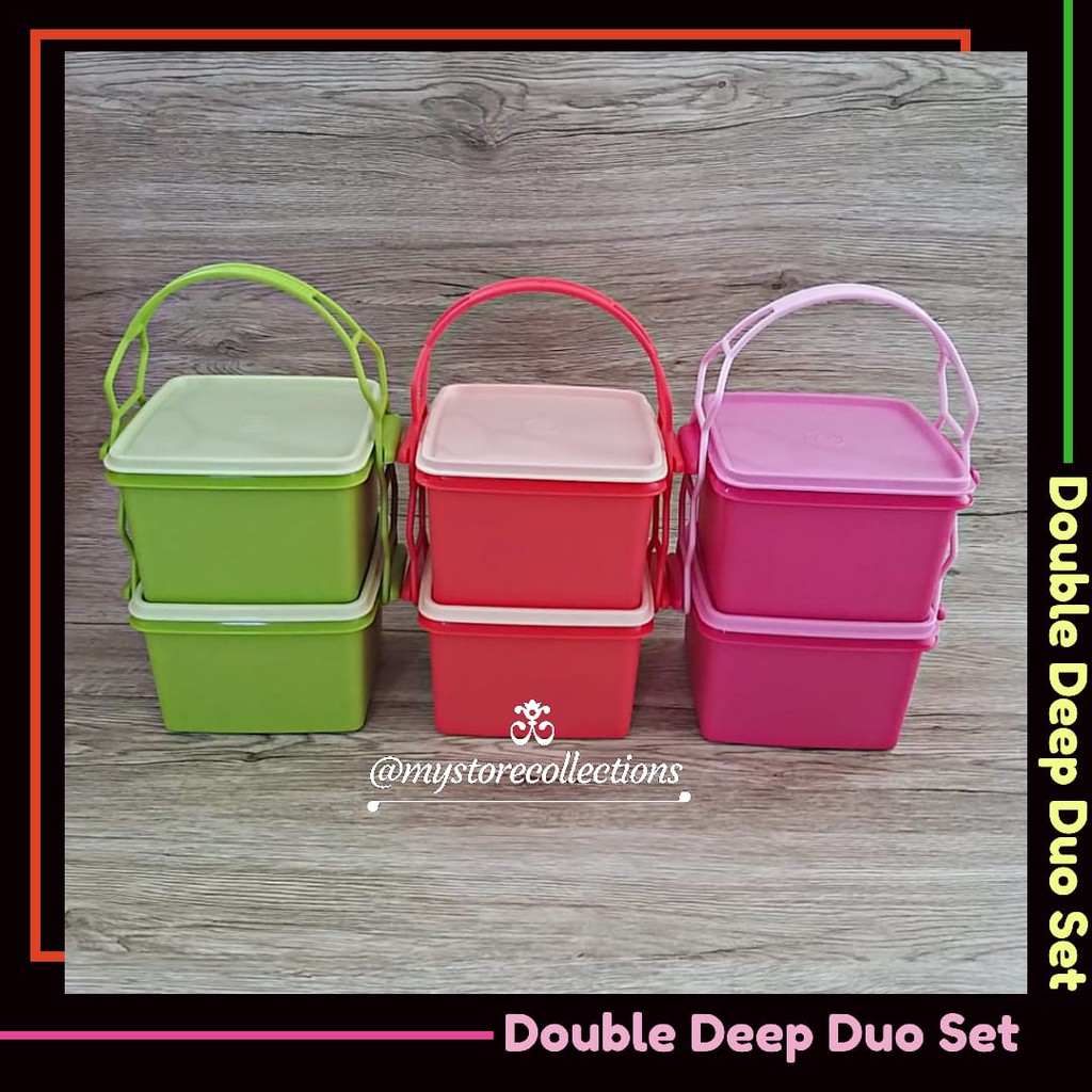 Double Deep With Cariolier Set Ukuran : 2 Pcs @1.7L / 19.2x 16.3 x 110 cm + HandleFitur Double Deep With Cariolier Set (2 Susun) Rantang 1.Terdiri empat wadah makan dengan ukuran sama dalam kombinasi warna-warni cerah, untuk ceriakan acara piknik Anda bersama keluarga.2.Dilengkapi seal ketat udara, untuk menjaga makanan di dalamnya tetap fresh saat disantap. Mau membawa salad, mie goreng, tofu lada hitam, dan gurame goreng ke acara piknik keluarga? Pasti bisa!3.Double Deep With Cariolier Set memiliki desain unik, pada bagian seal bercekung dan memiliki ukuran yang sama dengan base sehingga mudah disusun. Seal akan mengunci base wadah di atasnya, supaya mudah dibawa bepergian kemanapun.4.Terdapat cariolier yang berfungsi sebagai handle. Kaitkan cariolier pada setiap handle lunchbox, dan Anda bisa langsung membawanya dalam sekali jinjing.5.Jika Anda dan keluarga sangat menyukai menu bento, Double Deep With Cariolier Set adalah pilihan tepat untuk membawa bekal piknik. Lunchbox yang tidak memiliki divider akan memudahkan Anda menyusun bento kesukaan anak-anak ke dalam wadah, lho.NB : MOHON TANYAKAN KETERSEDIAAN BARANG TERLEBIH DAH