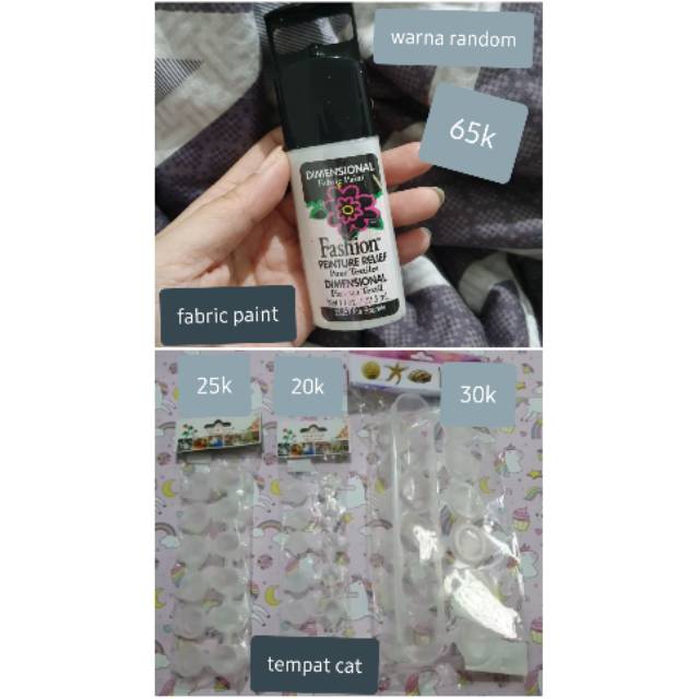 Fabric paint ada 2 macam: fashion (32,5ml) dan 3d Bead Paint (32ml)Beda nya dari merk aja.. ada di foto ke 2..Fabric paint boleh tulis warna, tapi kalo kosong pasti dikasih random.Tempat cat ada 4 macam: 25ml, 15ml, 5ml,