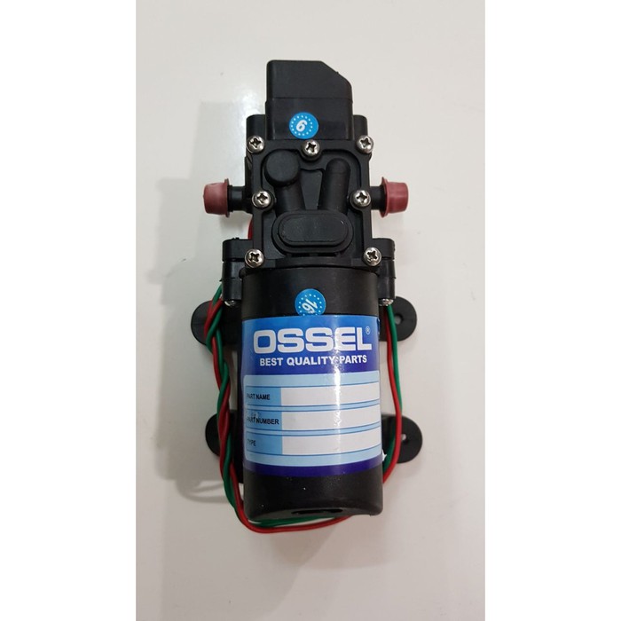 SILAHKAN BARANG KAMI READY BISA LANGUSNG DI PESAN PESEN HARI INI, DI PROSES HARI YANG SAMABrand : OsselSumber tenaga : Aki / Power Supplay. Adaptor DC 12 volt.Daya Hisap/ Sedot : 3,1 liter per menitTekanan Sembur air : 70 Psi / 4,88 barAmps : 2.1 ANote : BBRG , Thermal ProtectedAuto ON/OFF ( Pompa dilengkapi switch auto on/off, saat aliran output air ditutup maka pompa akan otomatis mati, dan sebaliknya bila dibuka akan otomatis menyala)Pompa air dapat digunakan untuk :- Pendorong Air dari galon ke Kangen water, Kecepatan pompa dapat diatur dengan menambahkan potensio Pompa Air DC.- Pompa air DC ini dapat digunakan / dipasang untuk semua merk pompa sprayer elektrik anda & dapat digunakan untuk memodifikasi pompa manual menjadi elektrik ( Sudah banyak teman2 modifikator yg mencoba dan hasilnya memuaskan )- Untuk taman/ kebun (bisa untuk air mancur, penyiram tanaman, penyemprot obat tanaman, dll)- Untuk rumah wallet dan usaha jamur, digunakan sebagai pengkabut- Untuk cuci kendaraan, menghisap air dari ember untuk disemprotkan ke kendaraan yang mau dicuci.- Untuk usaha air minum isi ulangSILAHKAN BARANG KAMI READY BISA LANGUSNG DI PESAN PESEN HARI INI, DI PROSES HARI YANG