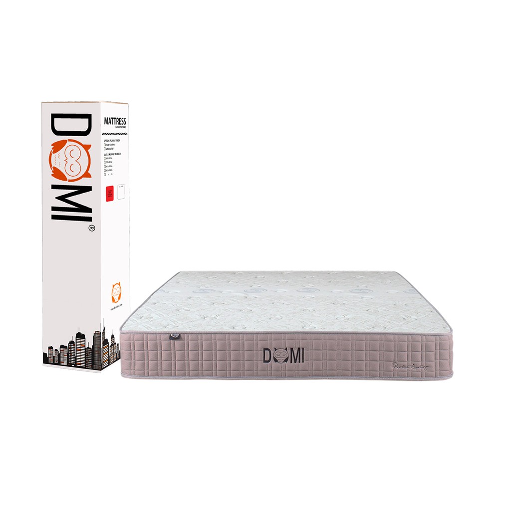 * Gratis Ongkir JABODETABEK, estimasi pengiriman 1 - 10 hari.** Pengiriman ke luar JABODETABEK harap chat kami terlebih dahulu.Keunggulan Produk:- Cover kain knitting yang lembut dilengkapi dengan teknologi Sanitized® dari Swiss, menjaga anda tetap sehat dan terlindung dari tungau dan bakteri.- Penopang utama menggunakan pegas pocket dengan jumlah yang banyak, mendukung tubuh Anda dengan optimal.- Menggunakan Polyurethane Foam dengan density tinggi, awet dan tidak mudah kempis.- Divakum dan digulung ke dalam box, ukuran compact mudah untuk dikirim dan dibawa kemanapun.- Tebal kasur 25 cm.- Tingkat firmness: Medium- Garansi Pegas 15 Tahun.Domi Mattress Pocket Spring, dirancang dengan konsep yang berbeda namun memberikan kenyamanan yang sama dengan kasur premium. Mengunakan pegas jenis Pocket yang kuat dan dengan kuantiti yang lebih banyak dari kasur pocket reguler, sehingga menciptakan rasa kasur yang lebih firm. Kain cover mengunakan jenis kain knitting yang lembut dengan treatment sanitized, yang bisa mencegah kuman berkembang biak. Menciptakan tidur yang lebih bersih dan lebih sehat.#domi #domibed #bedinabox #kasurbox #springbed #mattress #kasur #sanitized #kasurspri